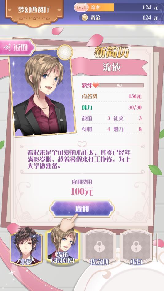 可以从中不同的角色进行招聘,并且角色之间还要羁绊的产生,这样更容易让你的餐厅发家致富呢。