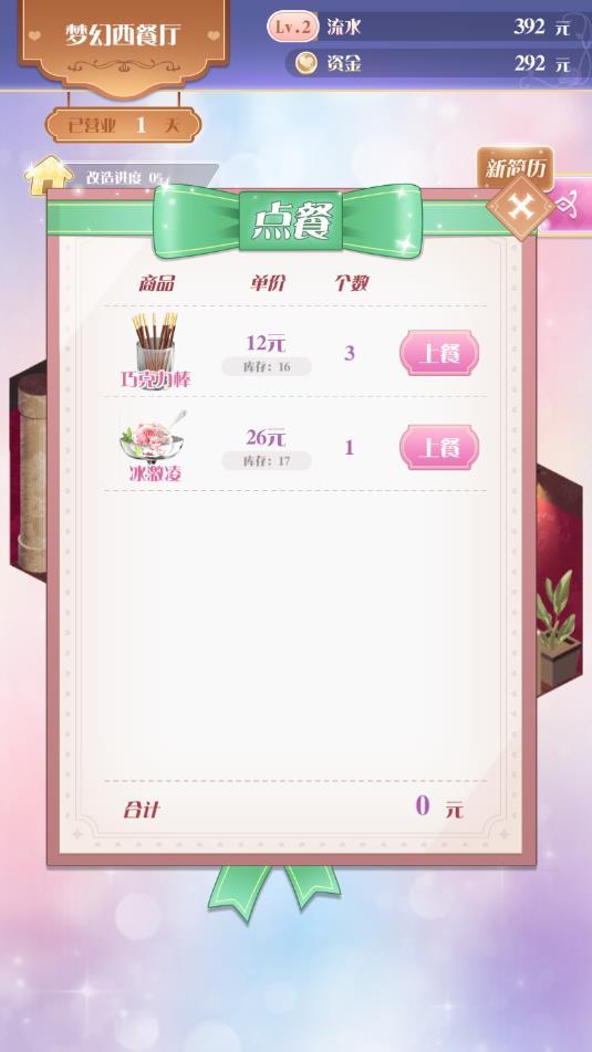 只有不断的完成挑战和任务解锁新的食谱,才能将自己餐厅规模做的更大;