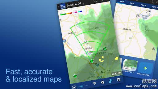 - 快速、准确且本地化的地图为您提供如下功能:“过去和未来”雷达、恶劣天气公告以及热带龙卷风跟踪(包括飓风)。