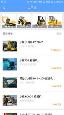 囊括工程机械行业真实可靠的二手机设备信息,用户可以从中筛选出适合自己的机器,直接与卖家即时沟通,没有中间商赚取任何利益;用户也可以通过“发布信息”功能将设备的详细信息、买卖价格以及机主信息上传,通过审核后即可展示。