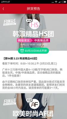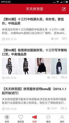 天天拼货团是一款方便实体服装零售店主拿货拼货的APP。是国内规模较大的实体店拼货社群,每天8点准时开团拼货。