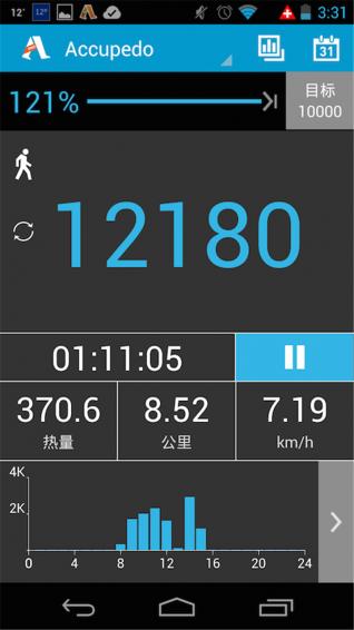 该软件都会准确地利用手机中的感应器结合Accupedo的算法监测您的日常的步伐,并且算出热量消耗,有助于计划日常锻炼。