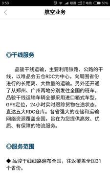 品骏快递APP的内容主要可分成七大类:一网上营业厅,包括寄件、查件、运费查询、时效查询、网点查询等服务;二账户管理,包括会员登录、用户名,地址管理等;三活动管理,包括广告、优惠券、活动详情等服务;四客户服务,包括在线客服和自助反馈等;六关于企业,包括企业简介、新闻资讯、人才招聘、企业荣誉、业务介绍等等。