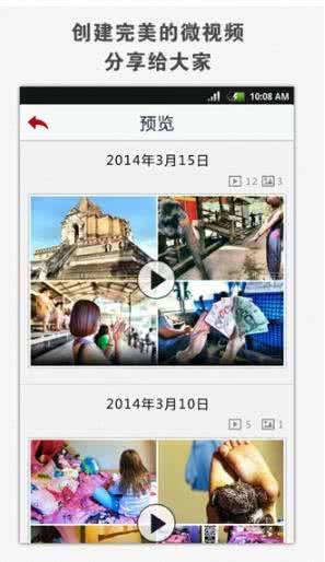 国内安卓首款图片自动转视频、简单且易上手的免费手机软件。自动识别设备中图片,按日期、场景智能排序,将文字、图片、音乐进行无缝融合,快速生成一段精美MV。