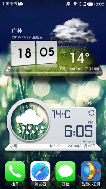 --安全、完全免费、无广告,无任何不必要系统权限:仅网络访问(用来下载在线小工具和更新天气) 和 读写SD卡文件(下载的小工具文件保存在SD卡),完全免费且无广告无流氓行为,安全放心。