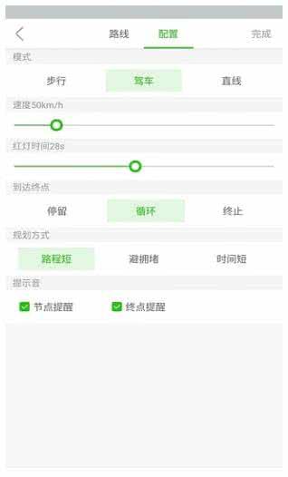路线模拟:针对指定应用,设置路线模拟,主要用于娱乐,开发人员还可以用来调试基于LBS的一些测试;