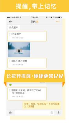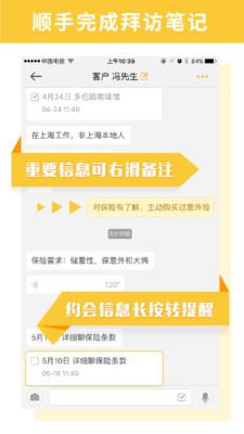 · 语音记事:贴近您的日常使用习惯,按住手机,说出你要记录的重要客户信息,像微信聊天一样简单。