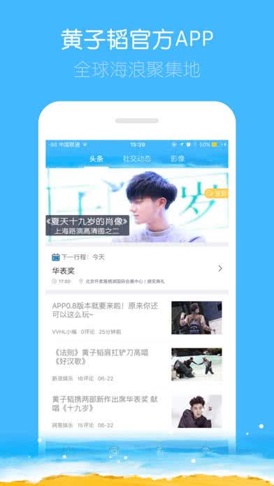 黄子韬官方app是一款专门为韬迷粉丝们推出的官方社区软件。在黄子韬ztao工作室上你可以掌握偶像的第一手动态行程安排,而且还能在黄子韬全球海浪社区参与活动赢明星签名礼物哦!