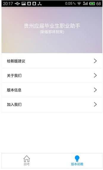 贵州招考app是一款贵州事业单位考试必备手机APP,贵州应届毕业生职业助手应用,贵州招考app可实时提供贵州省事业单位招考信息,涉及政府、医院、学校、银行等领域,信息准确丰富,是贵州公考的好助手!
