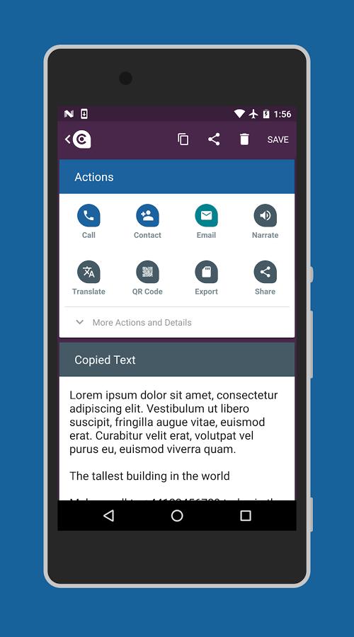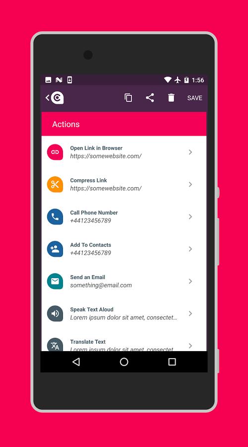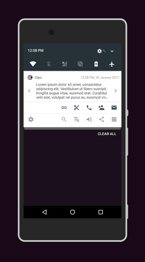 Clipo为你的文本复制创建快速智能的动作,将它们以通知或者在应用内的一个直观和美丽的列表显示。