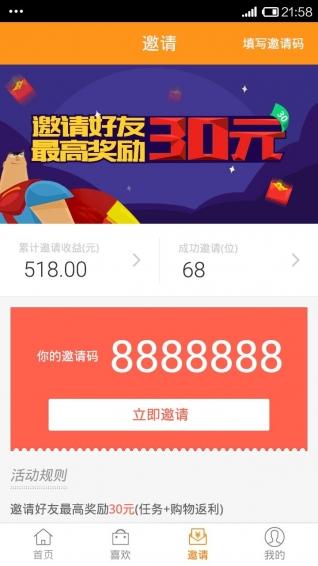 3、每日签到最高奖励30个集分宝、邀请好友奖励现金30元