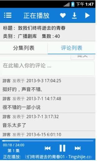 听世界,是一款专业的有声作品播放器,免费提供各类精彩的有声小说、广播剧、相声评书、声音故事、有声教材、幽默笑话等内容,解放您的双眼,让您爱上听的感觉!