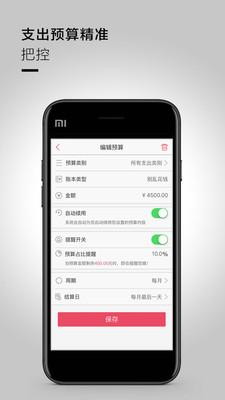 ● 设置预算:支持预算功能,每月固定额度,超支立即提醒
