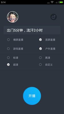 ⑤直播设置。选择直播类型、横竖屏以及清晰度