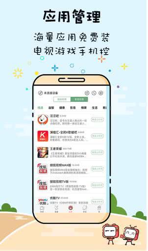 节目导视:每天自动更新热门节目、优秀节目推荐给您。随心切换,想看什么搜一下。 发现应用:各类电视应用一键安装到电视,大屏体验!