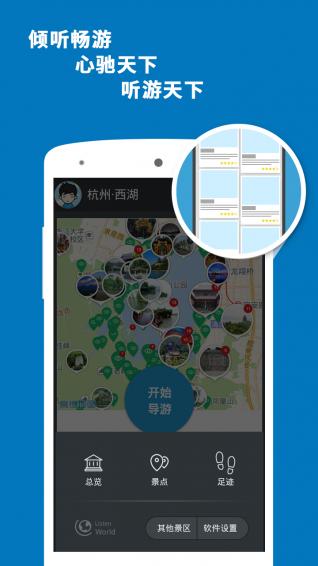 听游天下——西湖导游:专业的智能语音导游系统,专为喜欢自由行的旅行爱好者而设计。携手科大讯飞,带给您独特的杭州西湖印象。