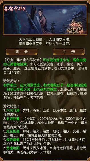 这里是真正的武林,在刀光剑影中,谱写你自己的传奇。
