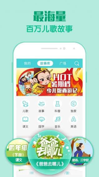 听儿歌童谣、儿童故事、胎教音乐、睡前童话、儿童英语、唐诗三百首、三字经、弟子规、小学课文就用口袋故事,孩子想听的这里都有,还有孩子众多爱看的动画片资源。