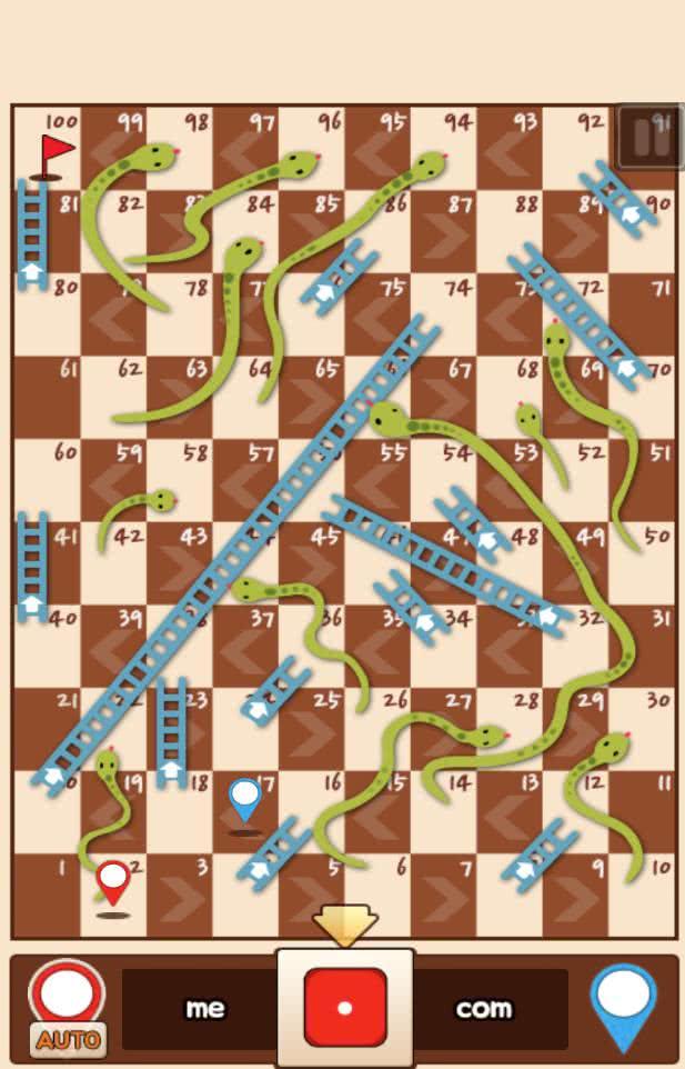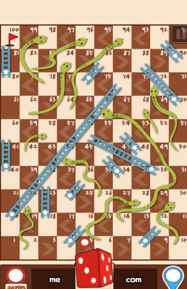 蛇与梯子王(Snakes and Ladders King)是一款虐心类型的棋类游戏,游戏支持电脑对战模式、多人对战模式与多人联机模式。游戏规则很简单,每人轮流掷一次骰子,并根据骰子点数决定前进步数,当你停下时,如果你是在梯子底部,那么恭喜你,你将直接爬到梯子顶部;如果你是停在蛇头的位置,那么很抱歉,你将掉到蛇尾位置。你能想象在终点前突然掉到起点的心塞吗?
