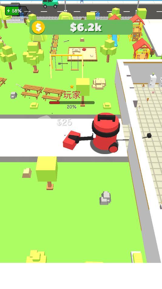 卡通版的游戏画风,让吸尘器体积变大开始吃掉比你弱小的吸尘器;