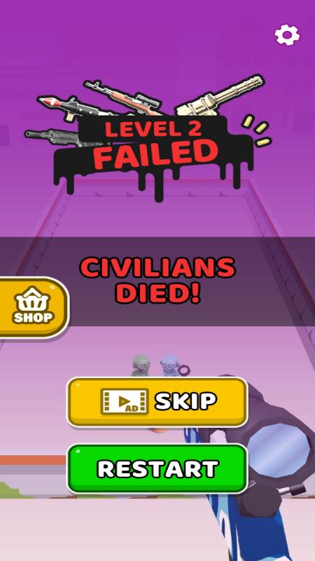 3、关卡任务难度越大给你的挑战也更大,只要你的射击能力强就能干掉所有的丧尸;