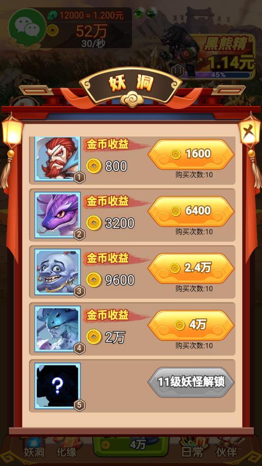 除魔西游让你感受充满西游元素的合成冒险玩法,不断解锁更加多样的妖怪,进行金币的不断赚取,支持进行化缘操作,不断进行更多的伙伴的解锁,玩法是非常简单的,不断进行等级的突破,才能够解锁更多有趣的玩法。