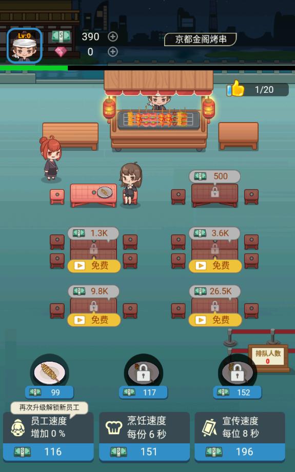 达到一定的等级,装修更豪华的桌椅也能增加收益,提升产品的产量,让顾客可以更快的吃到烧烤。