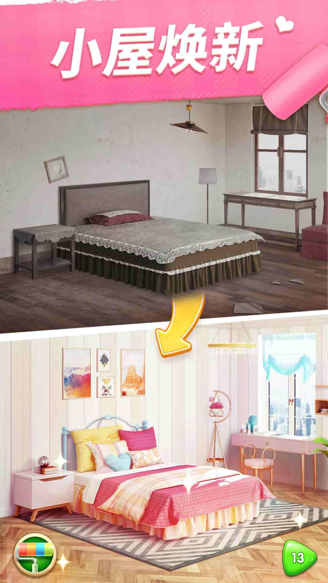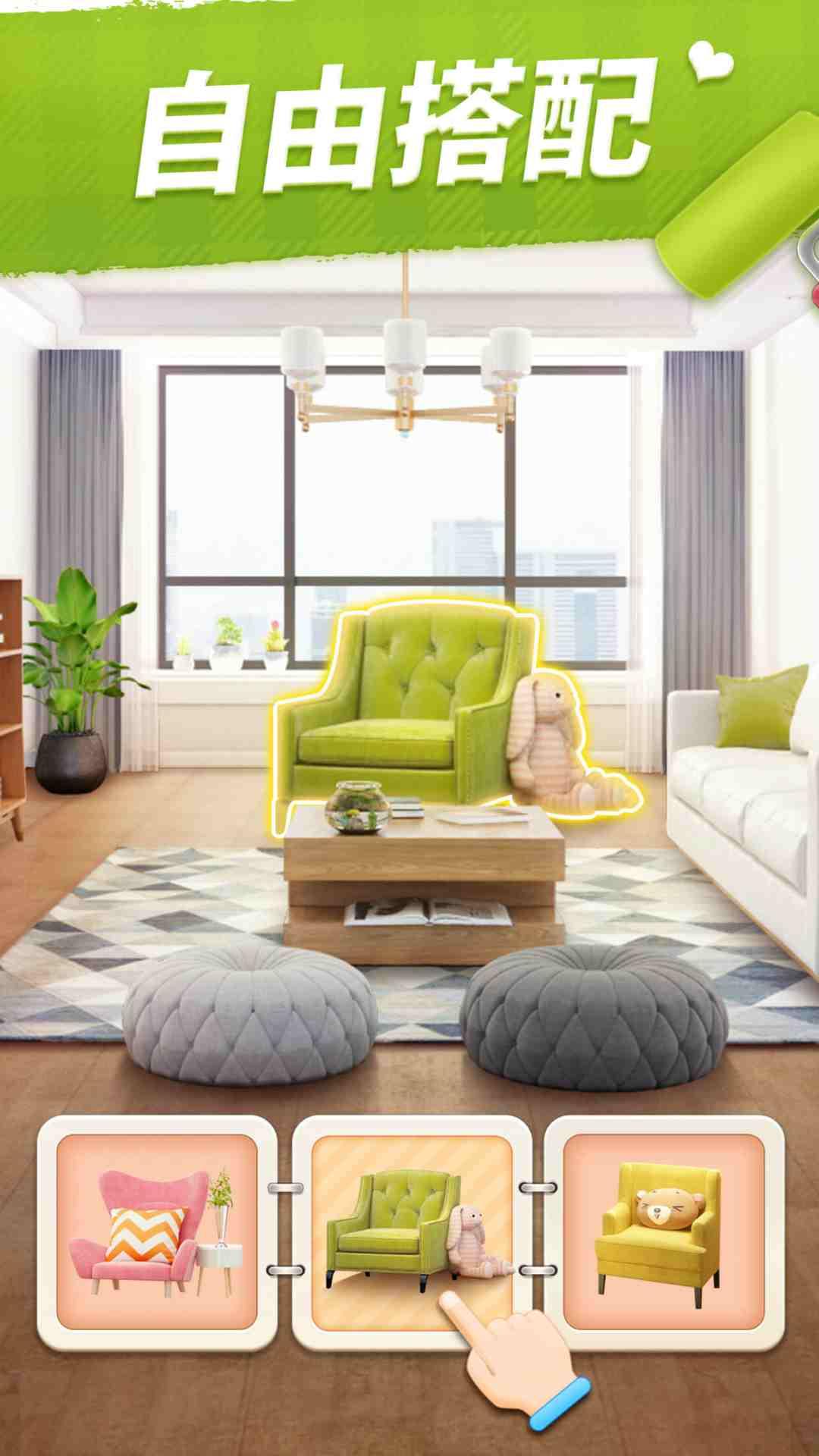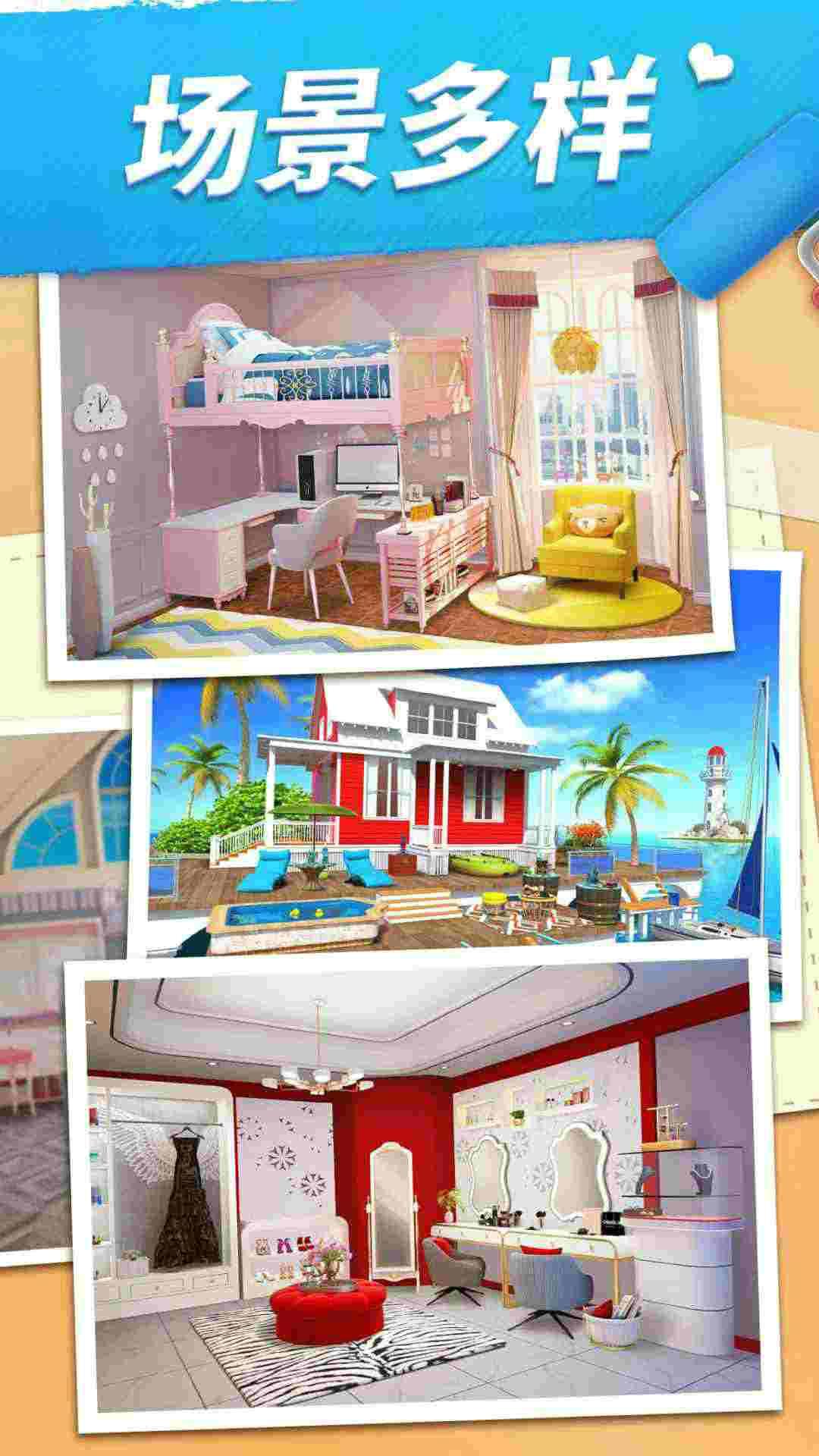 将房子进行装修,搭配不同的家具,游戏有着轻松简单的玩法。