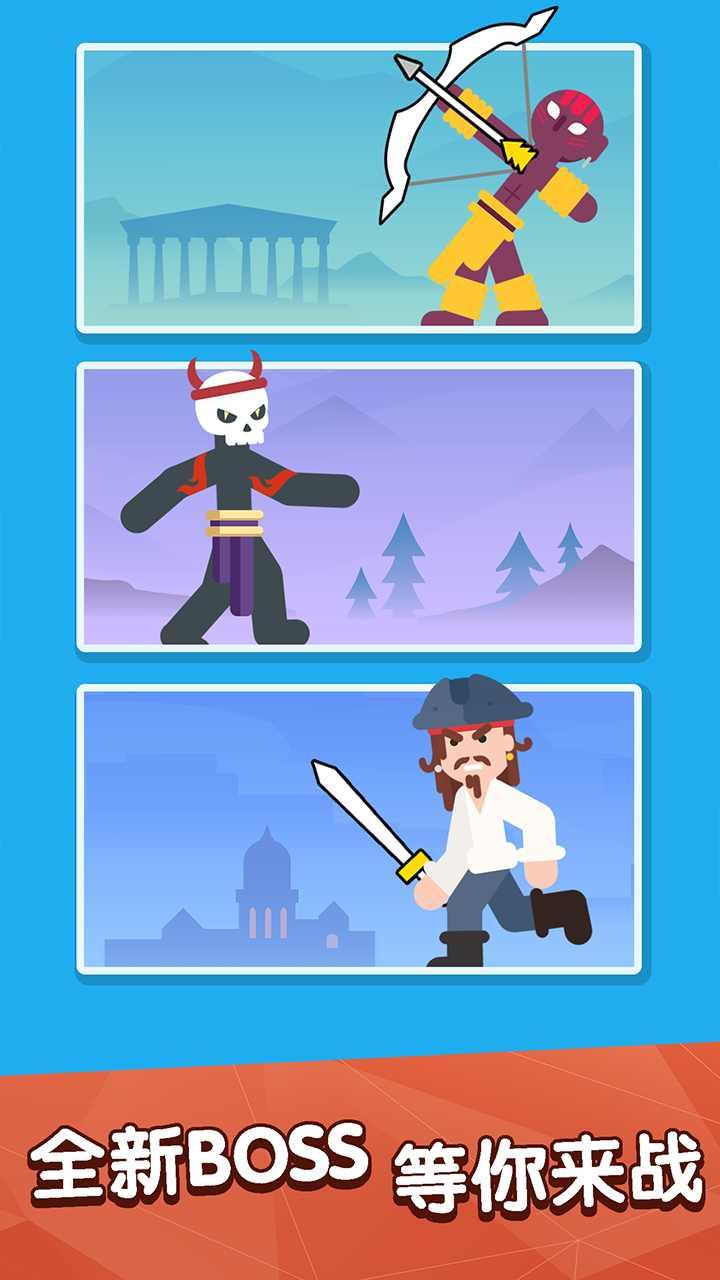 1、通过投掷武器来进行对战闯关,内容上比较的简单,但是玩法具备一定的刺激性。