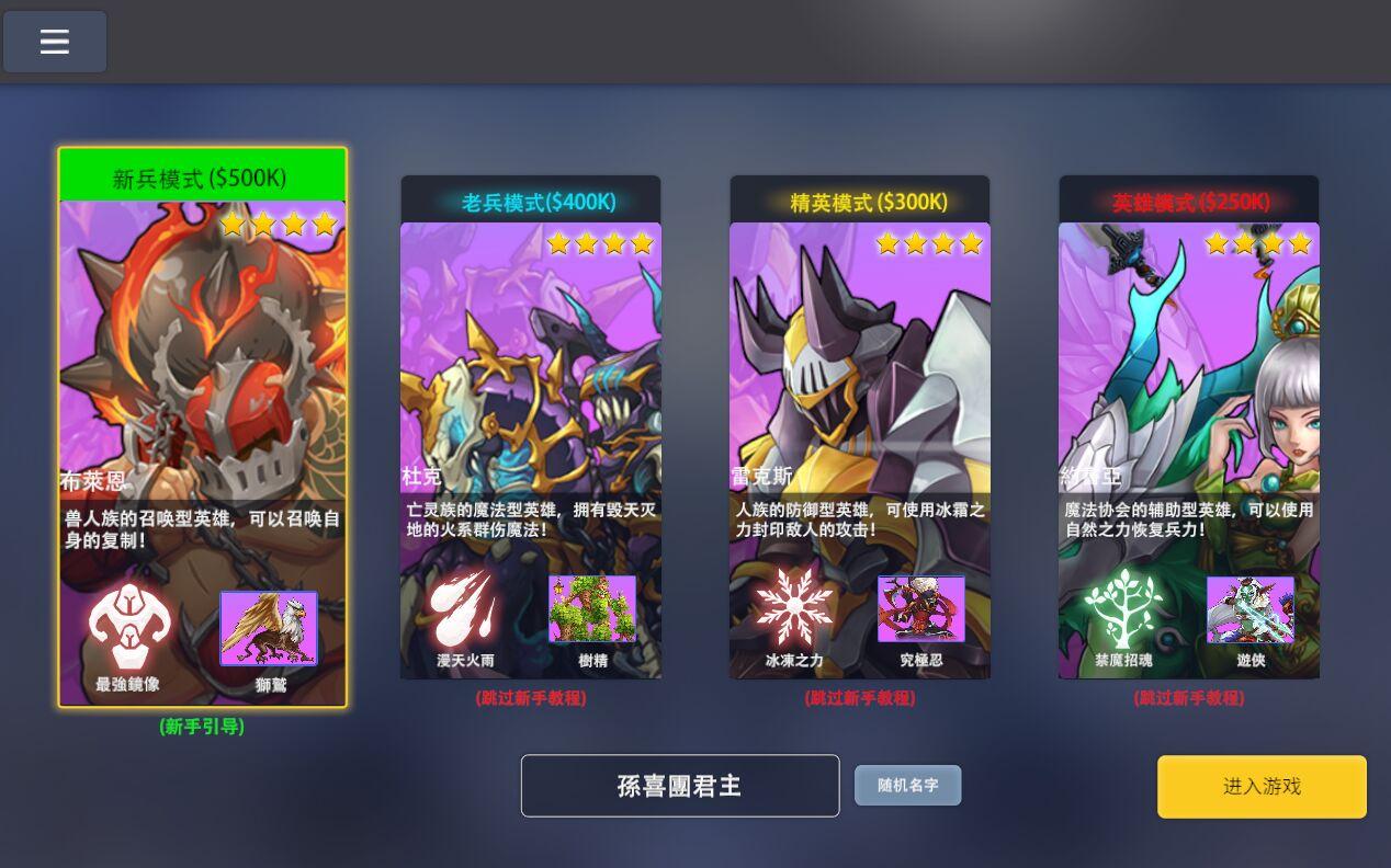 100多位史诗英雄,天赋技能+专精兵种+个性配点 创造独一无二。