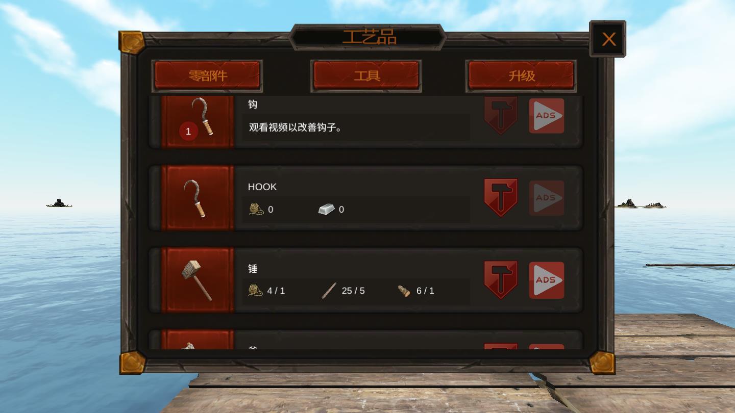 不断收集材料,在船尾放置上一些收集道具用的渔网,烹饪台和净水器都准备两个基本上就够用了。