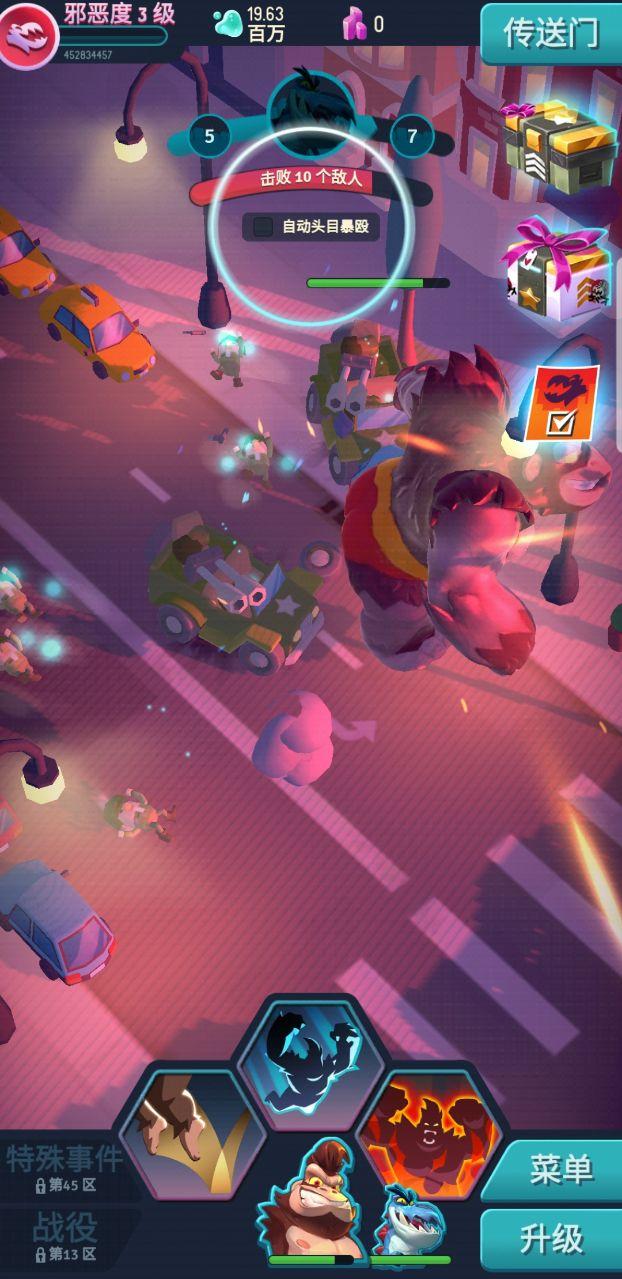 1、让你的怪物获得进化,不断提升自己的能力,成为破坏之王;