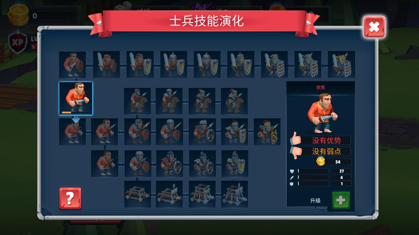 支持进行士兵的升级以及将士的解锁,炮塔上武器也是可以不断升级,提高己方的战力,城墙的生命值也是能够不断提升的。