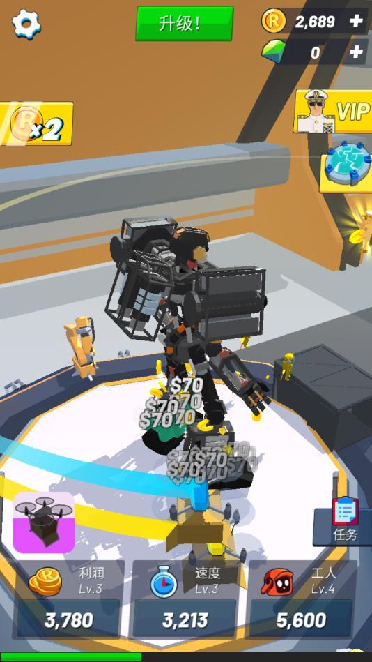 造机甲我贼溜是以机甲制作模拟为题材,在这里你可以自由进行非常强大机甲制作,自由度是非常高的,玩法是非常休闲有趣的,任务是非常丰富多样,完成任务就可以获得金币奖励,金币可以用来升级利润、速度、工人等。