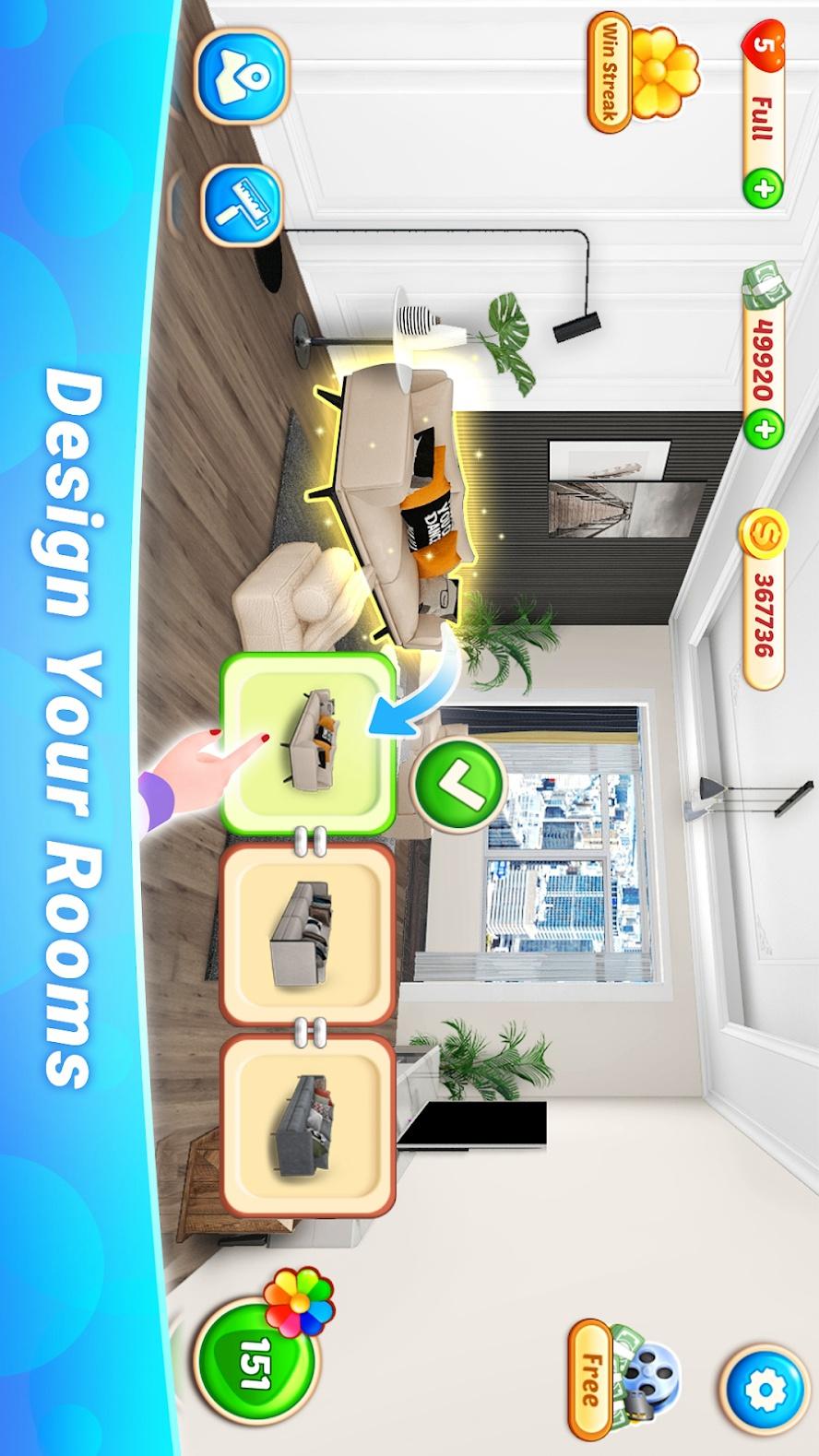 通过休闲趣味并且很有挑战性的消除来获取金币获得室内与室外的设计权;