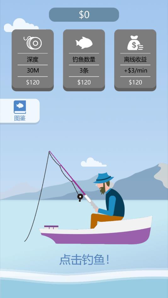 钓鱼高高手轻松开启你的线上钓鱼玩法,玩法是非常轻松且解压的,点击即可进行钓鱼,不同类型的鱼可以卖出不同的价格,鱼的种类是非常丰富,赚取的金钱可以用来进行深度、钓鱼数量、离线收益的升级,让你可以钓起更多的鱼。