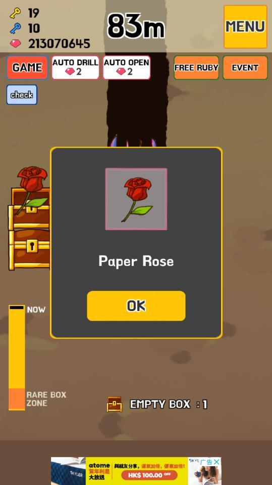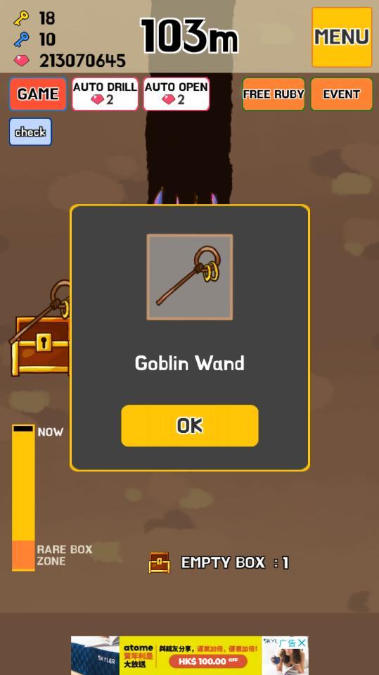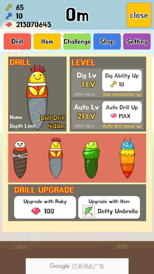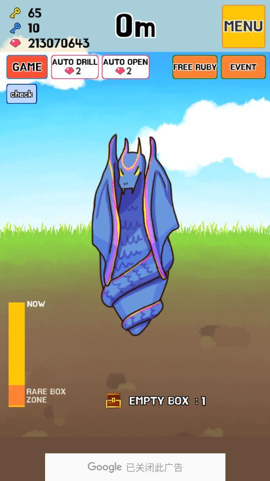2.去不断的进行点击你的屏幕控制钻头的方向,深入到地底更深处,发现更多的稀有矿物和宝箱;