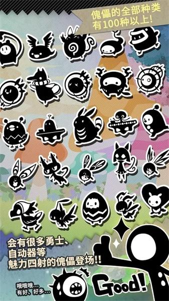 这款游戏总得来说,玩法以及操作设置有点过于单一,画面涂鸦风格,傀儡师和怪物以及找回色彩的世界奇奇怪怪,算不上美,也与游戏图标略有出入。整体感觉没有什么特别吸引人的地方。对于其放置这个元素真的没感觉到。(放了半个月上线感觉没啥区别…)好吧,就这样吧,不推荐,希望官方继续努力。