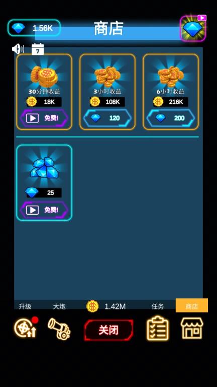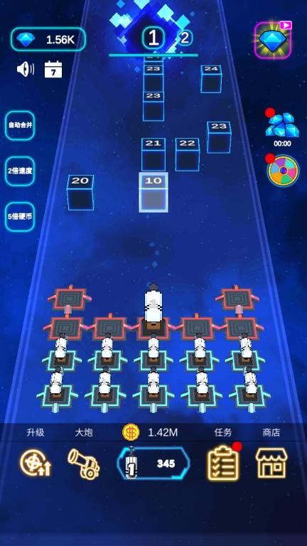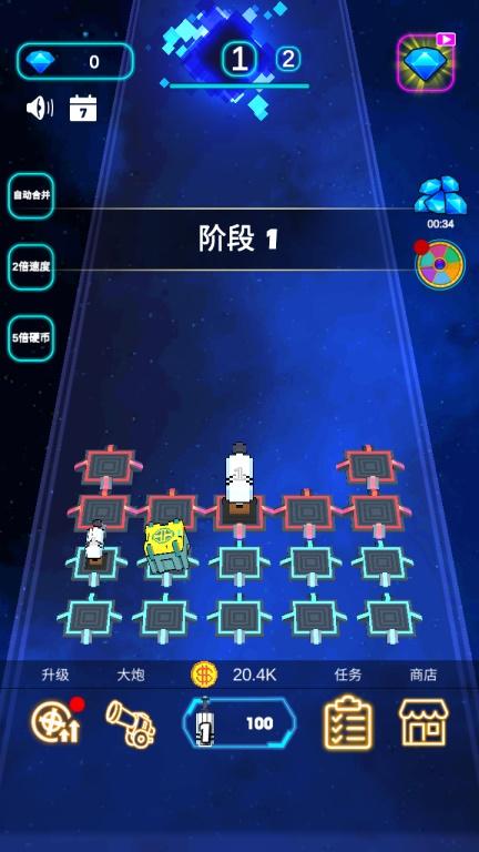 打爆砖块即可获得金币和星星,可用来换取更强力的炮塔!