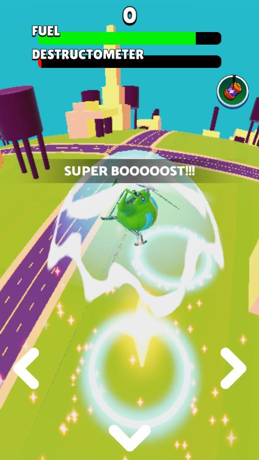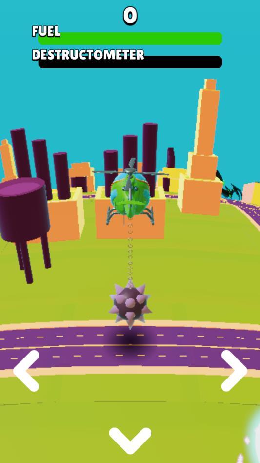 1、卡通3D游戏体验,控制直升机飞行,在城市随心所欲的搞破坏。