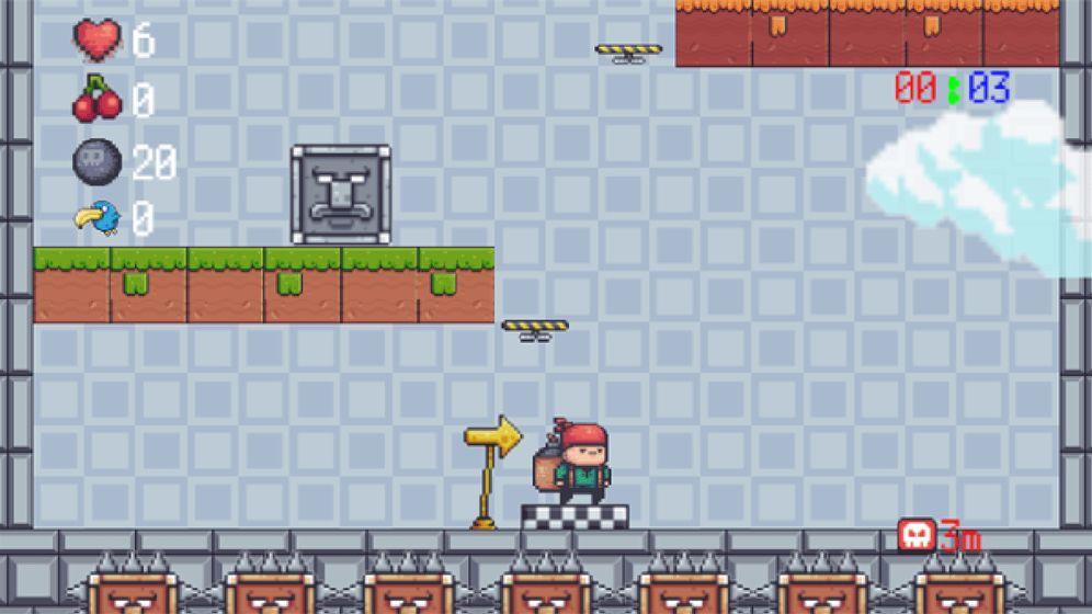 是一款2D像素风平台跳跃游戏,玩家来扮演主角蘑菇;