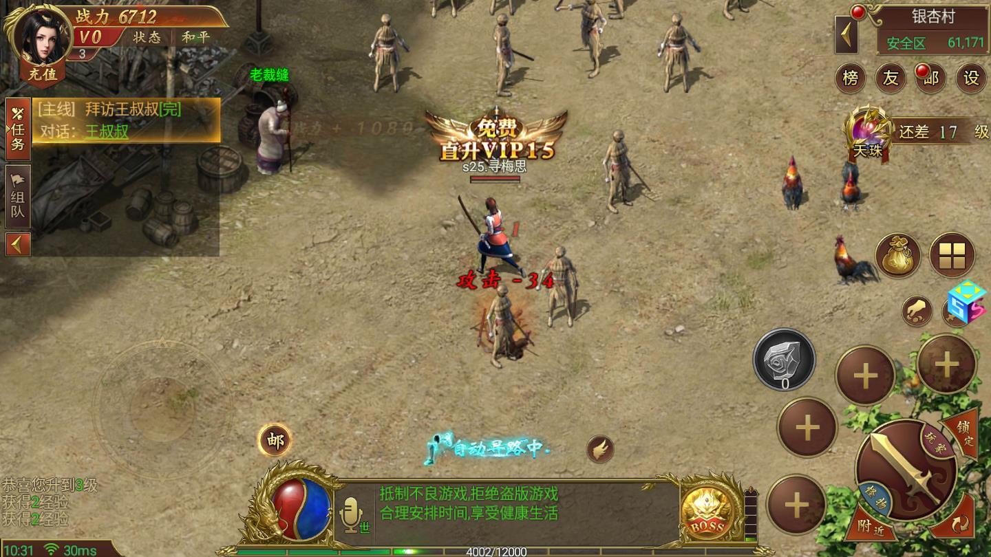打怪掉宝、装备出产、职业技能、自由PK,沙巴克攻城战等都将在手游中得到体现。