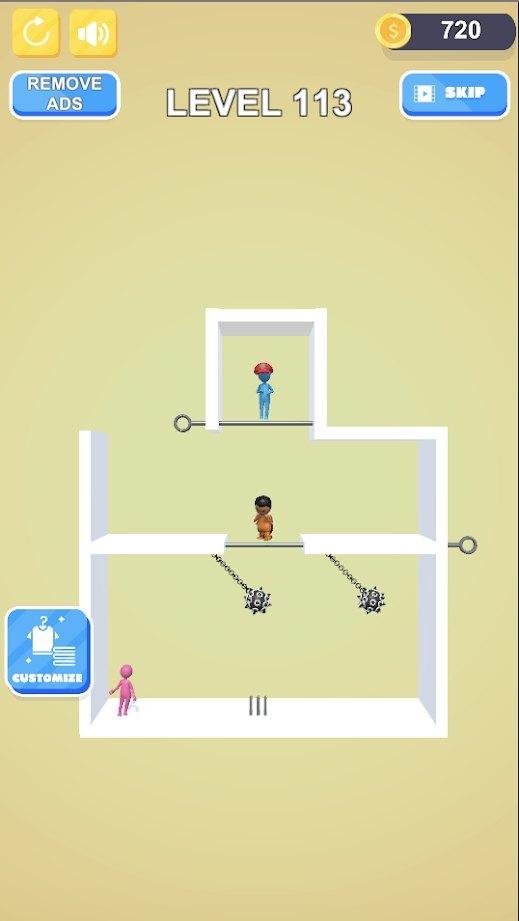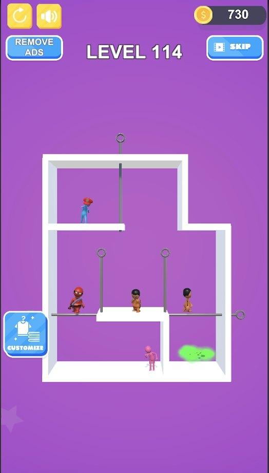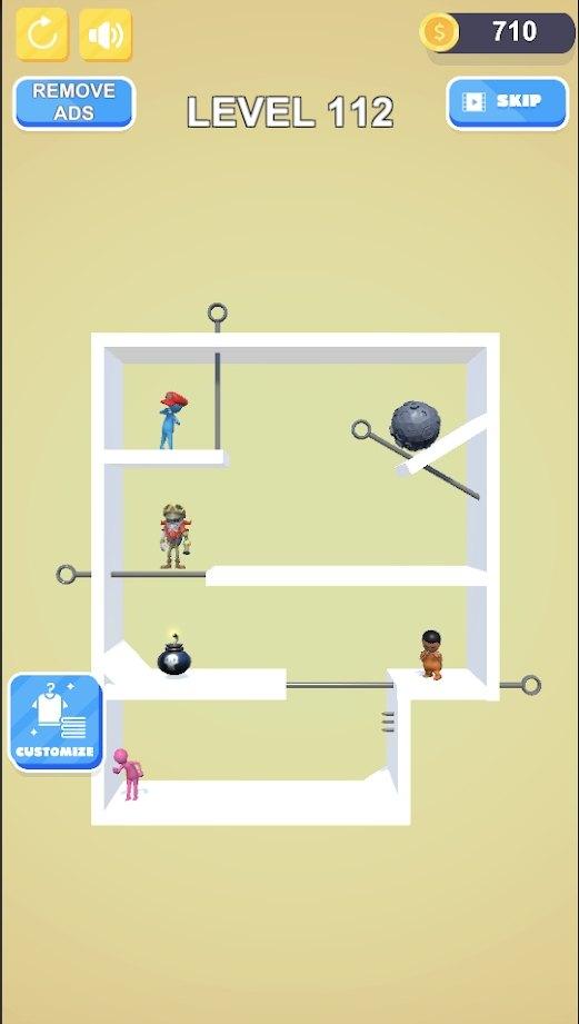 1.玩家需要在关卡中营救人员,并通过正确拔出销钉来营救人员。