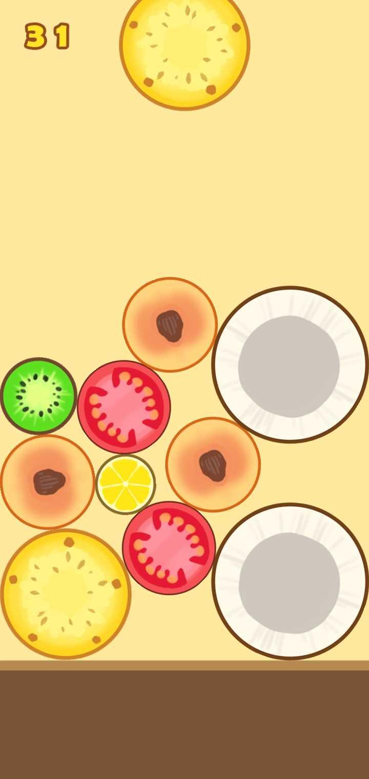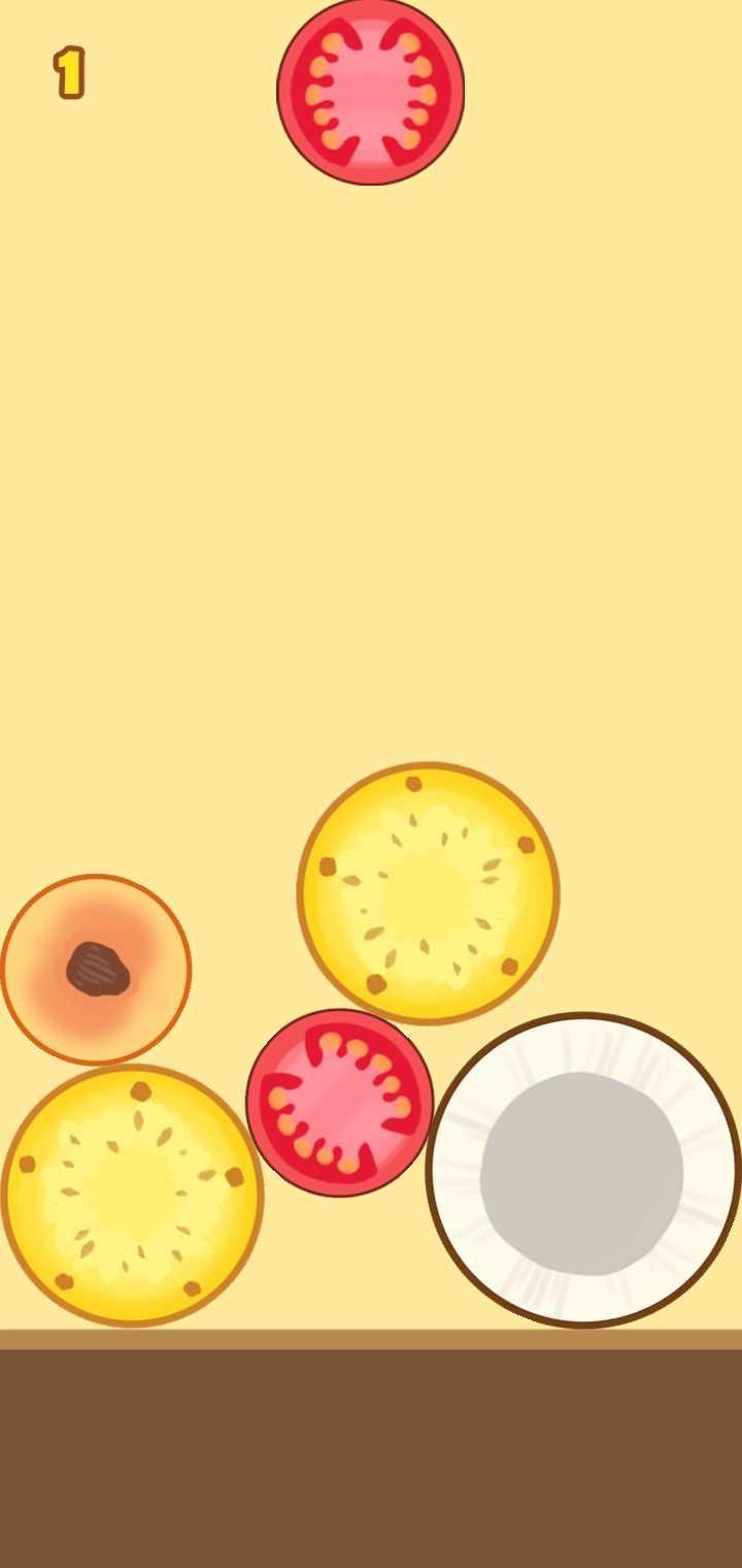 2.相同的水果从任意方向接触后,会合成一个更大的水果,最大的水果就是大芝麻。(类似 2048)