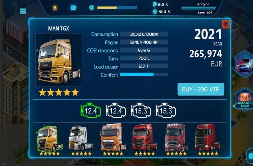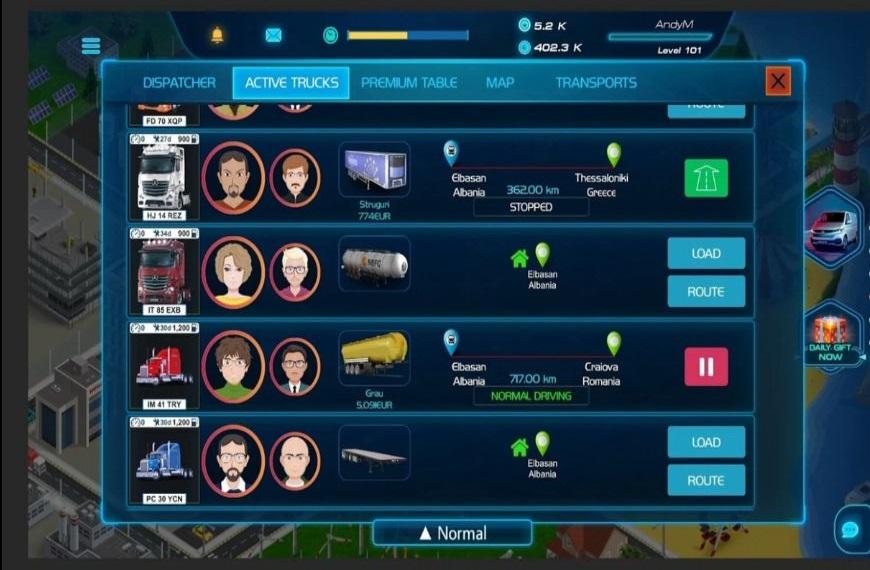 虚拟卡车经理2免广告获得奖励版,在这款游戏中玩家将经营一家卡车公司,为了让你的公司有更好的发展,玩家需要提高你的服务态度,并且增加卡车的经营水平,合理的规划每一条路线,招聘更多的员工。