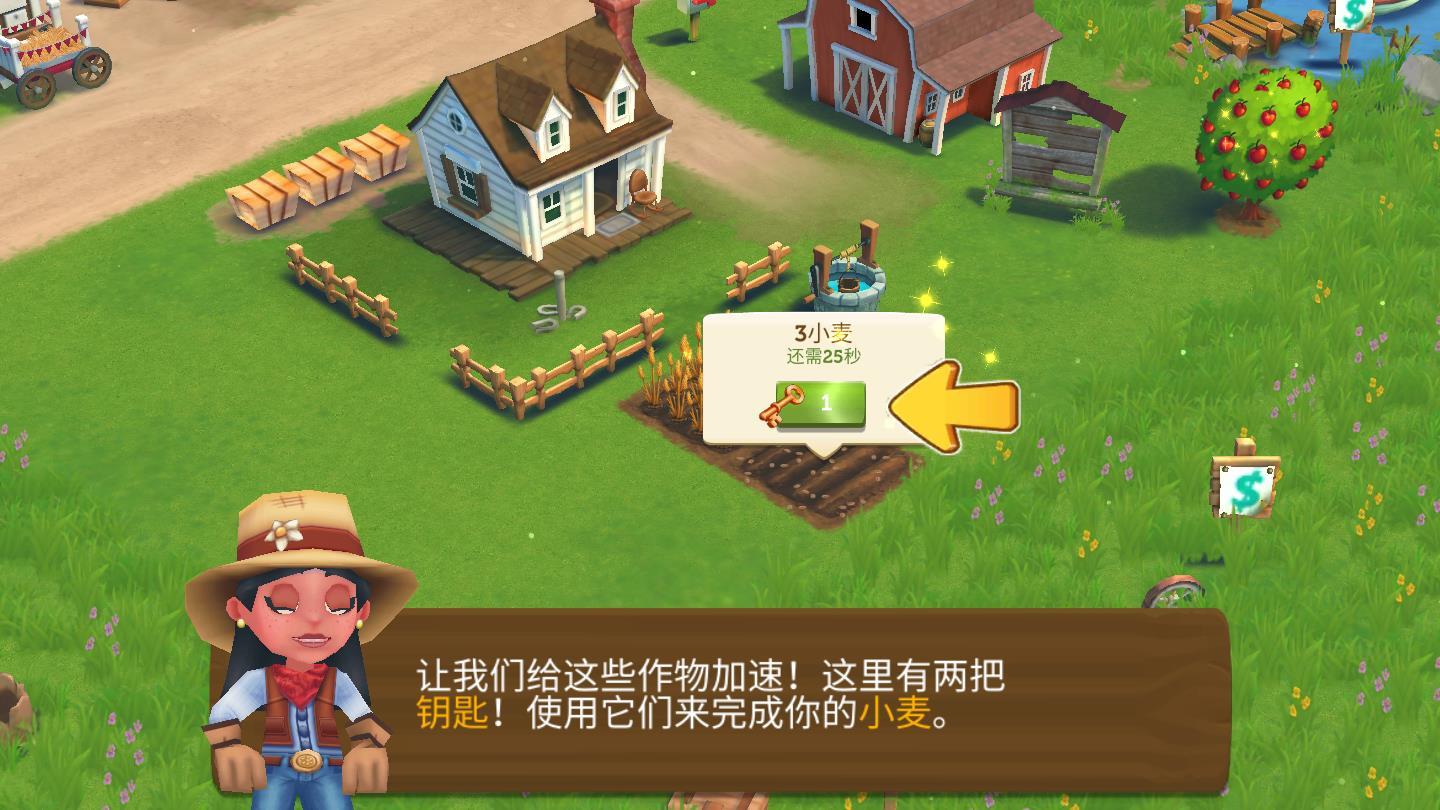 钥匙是可以进行农作物生长的加速以及多种作坊的建造加速的,让你种植、建造更加快速;