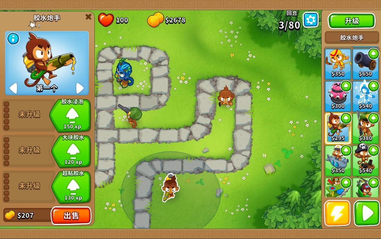 充分利用各种猴子塔、升级、英雄和激活技能搭建完美的防线,击破每一个出现的气球;