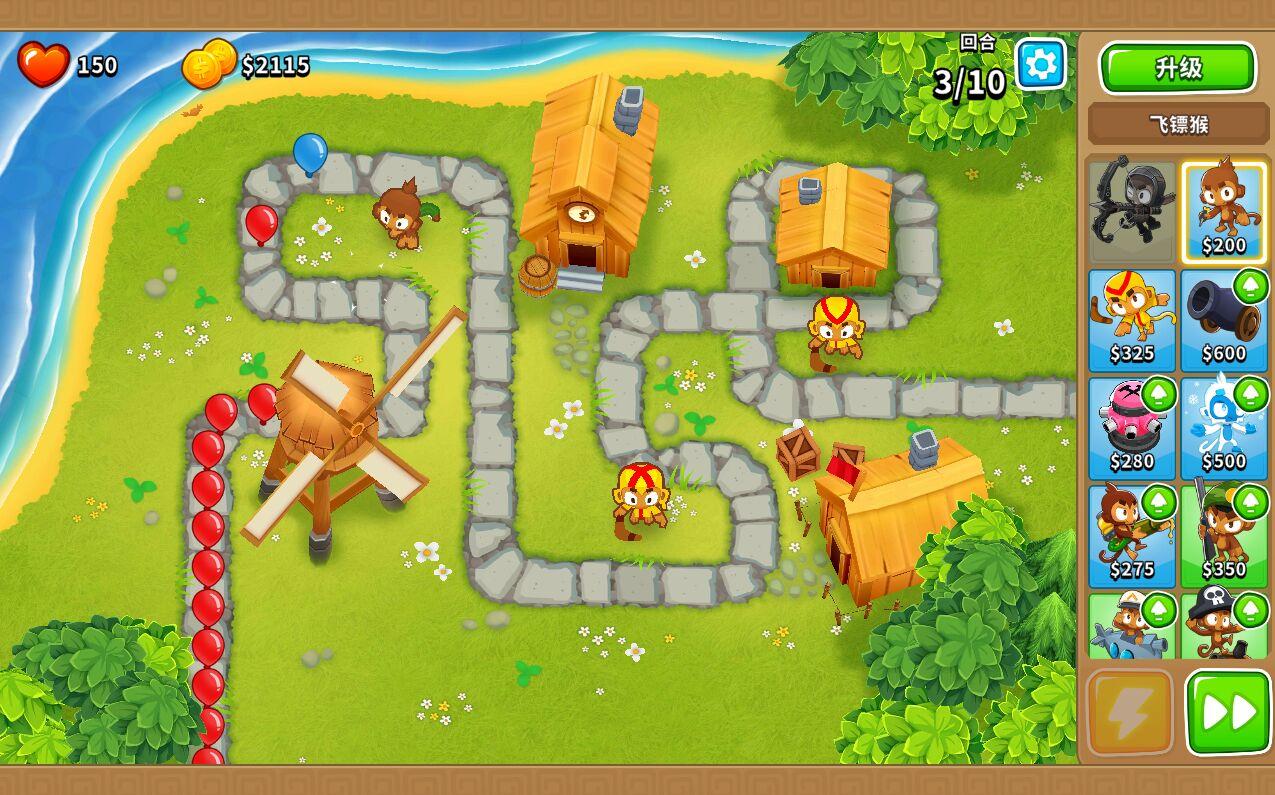绿气球比蓝气球更强,在一部分波次中被充当免费金钱使,在BTD4中它当然是,以后呢?