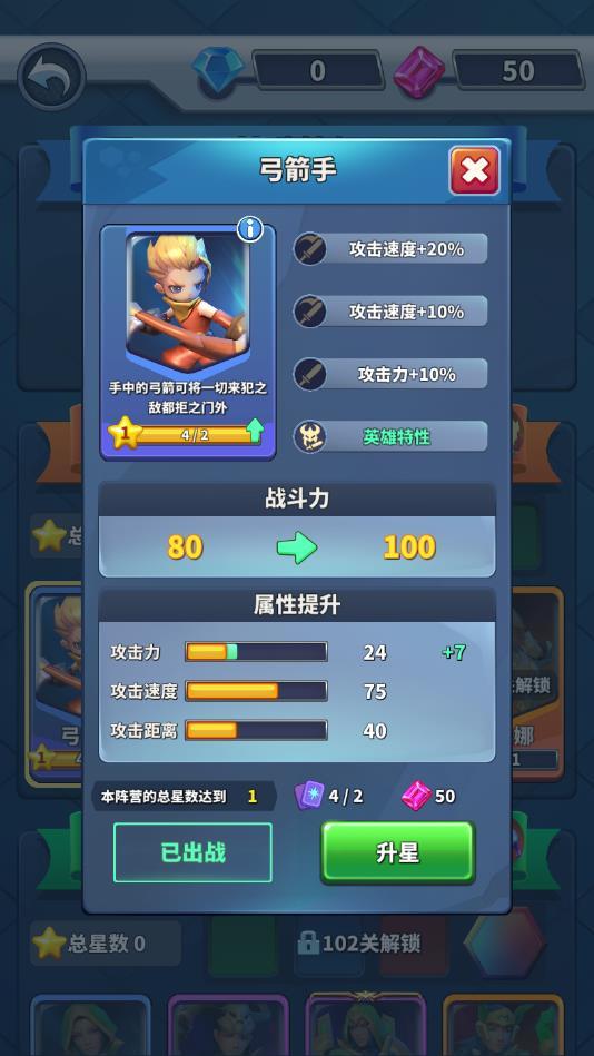 不同英雄的战斗方式以及战力都是不同的,你可以进行英雄的基础战力的升级,也可以进行英雄同等级的合成提升,都可以为你英雄提升战力。