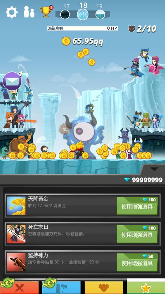 这是一款玩起来十分轻松的点击小游戏。游戏没有什么复杂的操作和规则,不停的点击屏幕就能消灭各种各样的敌人了。还能通过杀敌来获取金币,用来提升角色的属性,增强角色的战力,过关更加的轻松。不仅如此,还能召唤不同的角色拥有不同的趣味点击体验,游戏玩起来轻松有趣,赶紧下载游戏来一起灭杀可恶的泰坦吧。